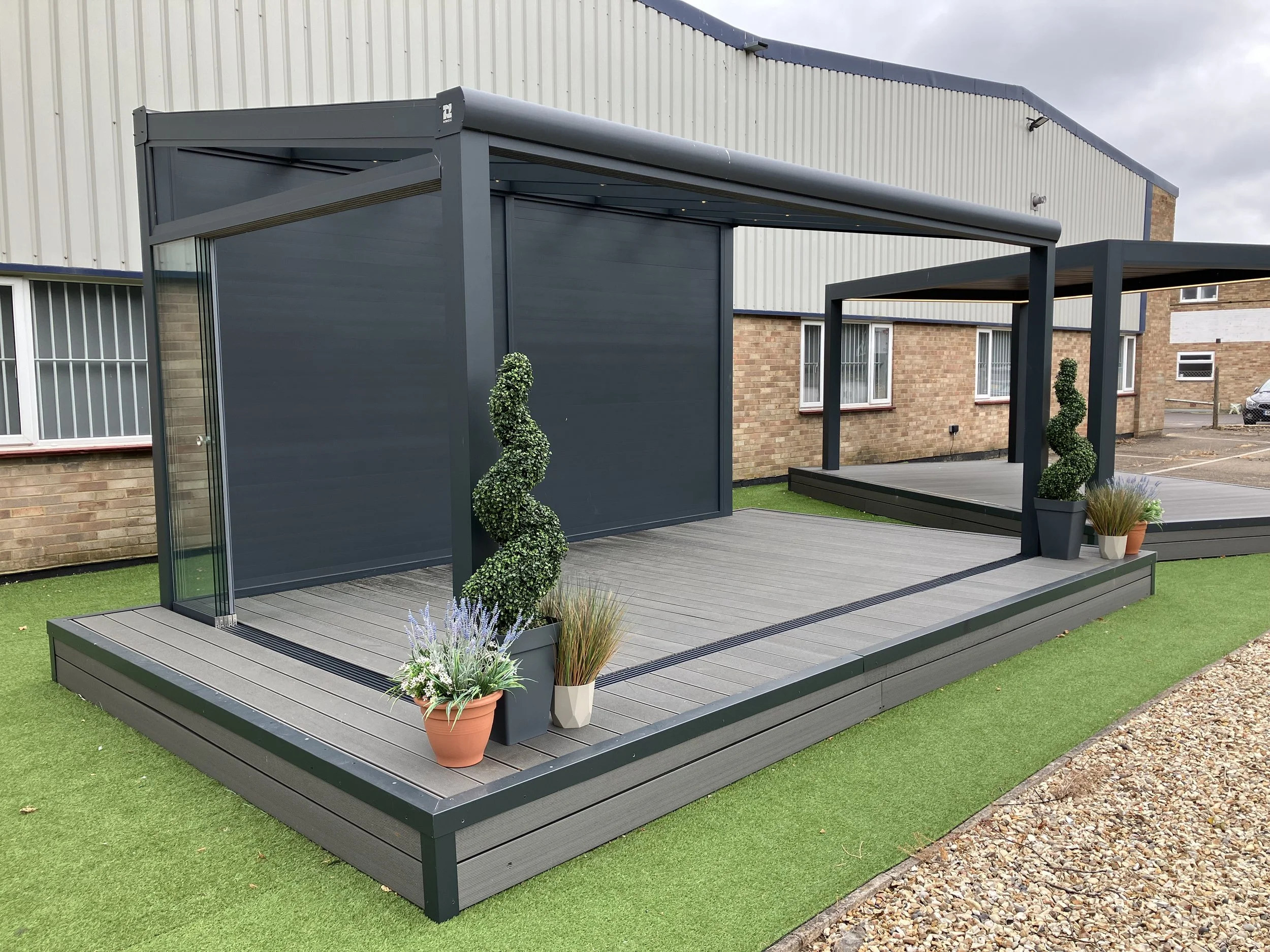 Our factory is located 5 miles from our showroom and we can show real life size completed samples of our Pergolas by appointment